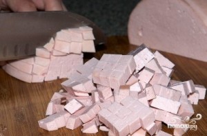 Также кубиками нарезать колбасу или отварное мясо, как вам больше нравится.