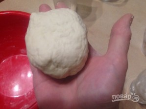 И замешиваем гладкое тесто, которое не должно липнуть к рукам. Теста получится вот такой маленький колобок.