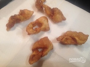Обжаренный хворост выкладываем на бумажные полотенца.