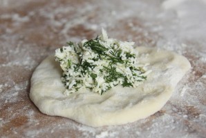 2. Месить тесто нужно не менее 10 минут, чтобы оно получилось эластичным и не липло к рукам. После этого можно дать ему немного полежать, прежде чем начинать лепить хычины с зеленью в домашних условиях.