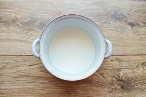 Молоко доведите до кипения и снимите с огня, остудите до теплого состояния. Добавьте натуральный йогурт и перемешайте.