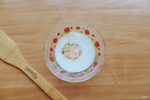 В мисочке соедините яйцо и сливки. Взболтайте смесь.