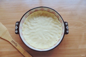 В форму для выпечки выложите тесто, образуя бортики.