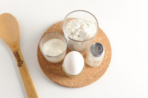 Разбейте яйцо в глубокую миску и добавьте соль, чтобы клецки не получились пресные.