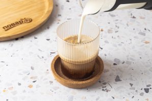 Молоко слегка взбейте с помощью капучинатора и влейте в стакан.
