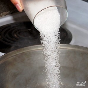 В кипящую воду добавляем сахар, сбавляем огонь до умеренного.