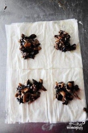 Домашняя выпечка к чаю. Конвертики с грибами - вкусная и легкая закуска-канапе. Приготовление конвертиков обычно не занимает больше 30-40 минут. Кстати в начинку можно использовать любые грибы. Очень вкусными конвертики получаются с лисичками. Но очень важно проследить, чтоб при жарке испарилась вся жидкость! Иначе конвертики с грибами потекут и может даже развалятся. но пересушивать грибы тоже не стоит. Желаю удачи