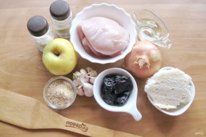 Подготовьте ингредиенты для приготовления куриных зраз с фруктовой начинкой.