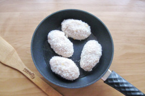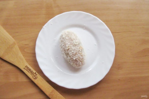 Обваляйте в панировочных сухарях. Так поступите со всем фаршем и начинкой.