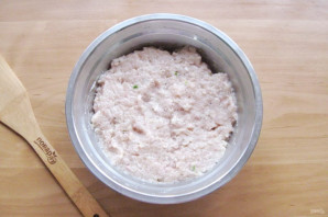 Тщательно перемешайте фарш до однородной, вязкой консистенции.