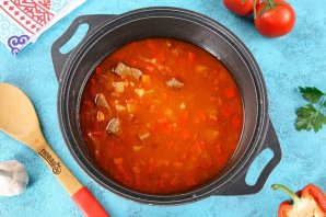 Влейте желаемое количество воды, чтобы она покрыла содержимое казана и тушите на минимальном огне 30 минут.