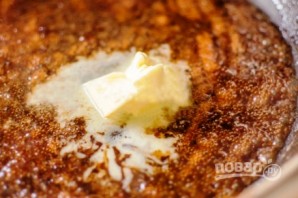 Когда соус начнет густеть, уберите травку, а добавьте соль и сливочное масло. Хорошо перемешайте, оставьте на несколько секунд и убирайте сковороду с огня. Поливаем лангет соусом и наслаждаемся вкусным блюдом.