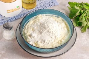 Добавьте пшеничную муку и ванильный сахар. Замесите творожное тесто.