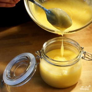 Перекладываем получившуюся лимонную массу цыплячьего цвета в стерилизованную баночку.