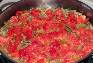 Когда масло растопится, добавляем нарезанные кубиками помидоры.