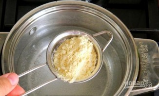 Просейте ложку кукурузной муки, когда вода будет закипать. Потом просейте оставшуюся.