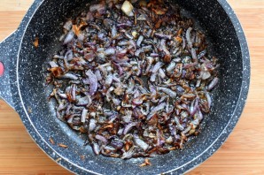 Лук мелко нашинкуйте и обжарьте на масле до хорошего румянца, чтобы вкус был насыщеннее.