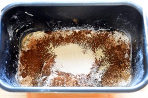 Муку обязательно просейте, особенно ржаную. Смешайте муку с отрубями и солодом, влейте теплую воду, добавьте сахар, соль и дрожжи.