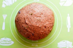 Скатайте тесто в шар, выложите в смазанную маслом миску, затяните пленкой и оставьте подходить в теплом месте. Тесто должно подойти не меньше, чем в 2,5 раза.