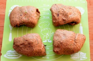 Раскатайте каждую часть в прямоугольный пласт и сверните рулетом, запечатывая каждый виток ладонью.