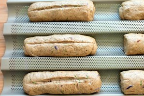 Выложите багеты в форму или на лист, сделайте продольный надрез и дайте подойти еще минут 15.