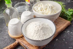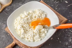Приготовьте начинку. Смешайте творог с яйцом и солью.