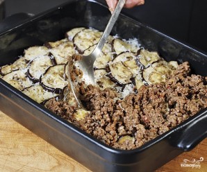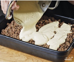 9. Залейте все это соусом, аккуратно распределив так, чтобы он все покрыл. И отправьте форму в разогретую духовку.