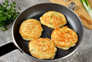 Разогрейте в сковороде немного растительного масла, выкладывайте в него по 1,5 столовые ложки теста и жарьте оладьи на умеренном огне минуты по 1,5 с каждой стороны.