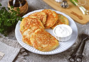 Готовые оладьи с зеленым луком и колбасой подавайте к столу горячими. Обязательно предложите к таким оладушкам густую сметану.