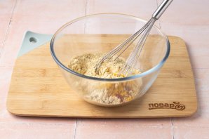Нутовую муку смешайте с солью и всеми специями.