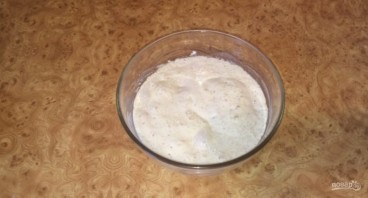 1. Приготовьте опару: закваску-стартер выложите в миску, добавьте воду и тщательно перемешайте. Добавьте муку, перемешайте. Накройте миску пищевой пленкой и оставьте при комнатной температуре на 8 часов.