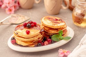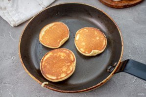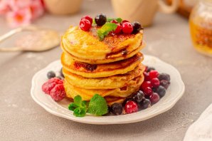 Идеально подойдёт к чаю и кофе. Раньше эти блинчики были очень популярным завтраком только в США и Канаде, теперь же панкейками с удовольствием завтракают во всём мире. Такая популярность панкейков довольна очевидна, они очень вкусные, а готовятся просто и быстро. Такие блинчики очень любят детки Выпечка готова. Подавайте к столу.