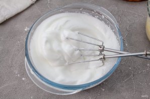 Яичные белки взбейте до устойчивого состояния.