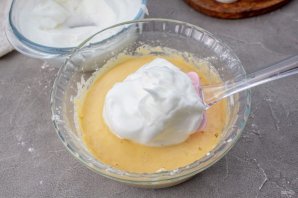 Частями введите яичные белки в тесто и аккуратно перемешайте.