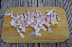 Грудинку нарежьте одинаковыми брусочками.