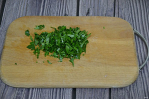 Мелко нарежьте зелень петрушки.