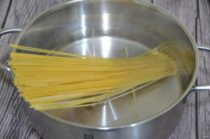 Параллельно отваривайте спагетти согласно инструкции на упаковке, до состояния "аль-денте".