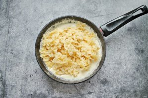 Влейте в сковороду сливки и уваривайте на медленном огне до загустения. На это уйдет примерно 7-8 минут.