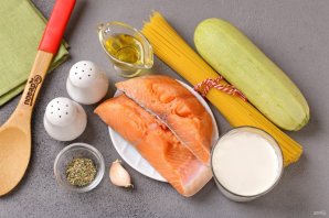 Блюдо готовится без лишних сложностей. Приготовить пасту с лососем и кабачком можно буквально на скорую руку. Рецепт очень простой, но удачный. Идеальное блюдо как для праздничного стола и романтического ужина, так и просто в качестве разнообразия повседневного меню. Рецепт не требует особых кулинарных навыков и способностей, берите на заметку! Очень нежно и вкусно Готовое блюдо можно подавать к столу.