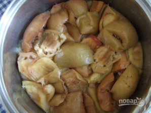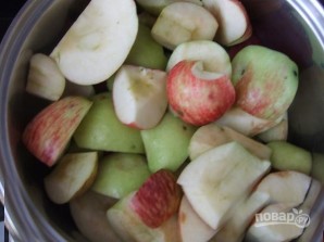 Поставьте воду и проварите яблоки до мягкости.