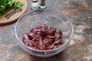 Куриную печень хорошо промойте под проточной водой. Удалите прожилки.