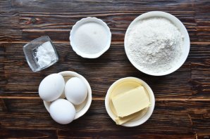 Подготовьте продукты для приготовления песочного теста. Яйца разделите на желтки и белки.
