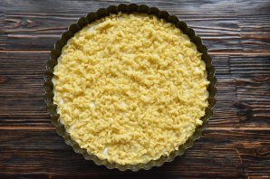 Оставшуюся охлажденную часть теста натрите на терке и разложите поверх сметанной заливки на всю поверхность пирога. Выпекайте пирог в духовке разогретой до 180 градусов 40-45 минут.
