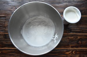 Поэтапно добавьте в белковую смесь сметану и продолжите взбивать еще 1-2 минуты.