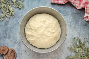 Миску с тестом уберите в теплое место на 50-60 минут для подъема. Тесто должно увеличиться в два раза.