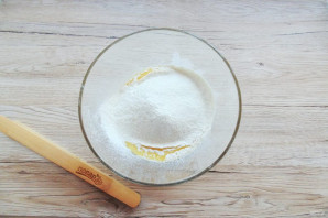 Дрожжи раскрошите в миску. Сухих дрожжей потребуется в три раза меньше, то есть 7-8 грамм.