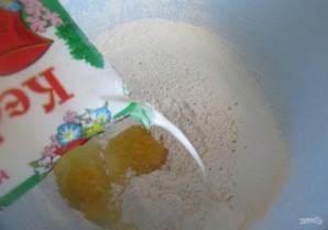 3. Вливаю в миску кефир (2,5% жирности), по вкусу солю и перчу.