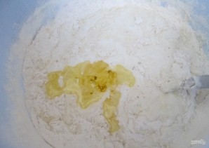 4. Перемешиваю тесто и вливаю 2 столовые ложки подсолнечного масла.