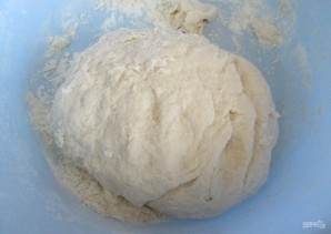 5. Подсыпаю оставшуюся муку и замешиваю тесто, оно не должно липнуть к рукам, оставляю его на полчаса.