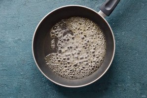 На сковороде растопите сахар с водой, доведите до кипения.